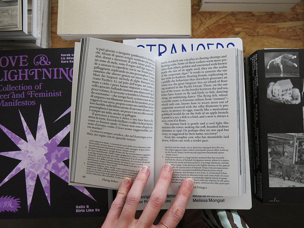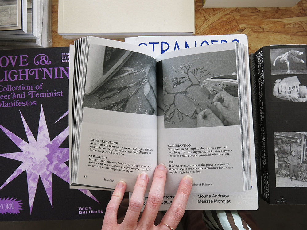 The result of an artist residency supported by Fondazione Crespo and held on the Irish coast of West Cork, Abécédaire of Fringes brings together contributions from Lorenzo Rebediani, Vera Scaccabarozzi, Luca Trevisani, and Francesca Verga. Conceived as an abecedary, the text weaves together personal reflections, scientific observations, and philosophical insights, all drawn from the region’s unique amphibious setting. Without chapters, the book invites the reader to chart their own course through its fragmented form – mirroring the jagged, meandering nature of its content.