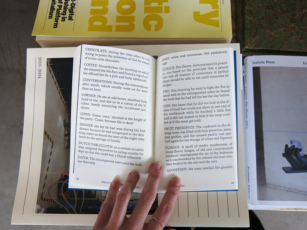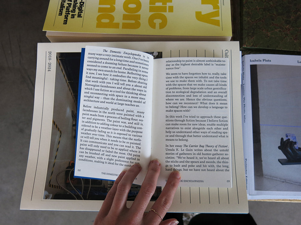 The Domestic Encyclopaedia is a collection of stories that explore the material body of architecture, of houses. In the midst of ongoing ecological disaster and increased alienation from nature it invites you to travel beyond the screen, to practice attention and probe the nature of domestic space.