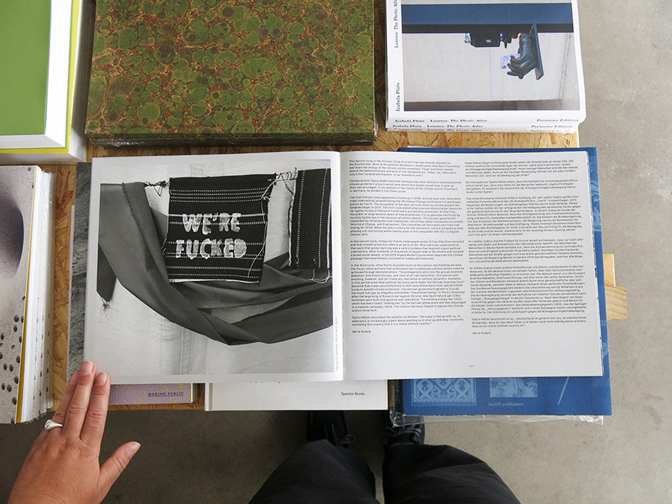 People on the brink, depopulated areas, desolate villages – it only becomes clear after a second glance that Beate Gütschow’s photos show protests, reconstruction work after catastrophic flooding, and the impact of forest fires on villages and landscapes: dystopian events that have happened in the recent past, and in Central Europe at that. It is not until weeks after the events that Gütschow arrives in the places concerned. Her long-term photographic studies give rise to counter-images to set against the usual depictions of disaster. These are more tranquil images that are emotionally accessible and make it possible for events to be analysed. Gütschow is also part of the climate justice movement. Here, she participates in and records what she finds, documenting actions, occupations, and demonstrations: an interior perspective in which the photographs combine with diaristic notes to create a composition of text and images.
