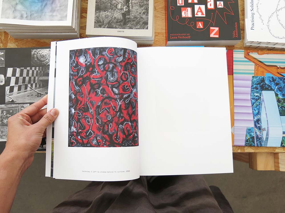 donna Kukama has been creating performance works for several decades, works that she enacts in and outside of art events or contexts. The documentation of these performances has evolved from that of incidental 'witnessing', to being a central component in the making of the works, where the camera is imagined as its chosen audience. The former moments are reproduced for the publication in a lower grain, suggestive of the media of news-gathering and transmission. By contrast, Kukama’s tangible works are presented in high resolution. These works, which combine traditional art media like acrylic, oil stick and charcoal with intangible, 'non-visible' ingredients including revenge, instinct, tears or screams, emerged latterly in the artist’s practice – the earliest here are from 2015 – from her investigation of alternative methods of documentation and remembering, and have since become one of several distinct yet interconnected facets of her work. An extensive conversation between Kukama and Johannesburg-based writer and curator Khwezi Gule included in the book offers insights into yet further strands of her practice.