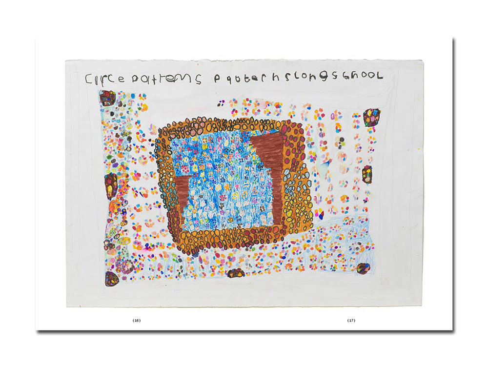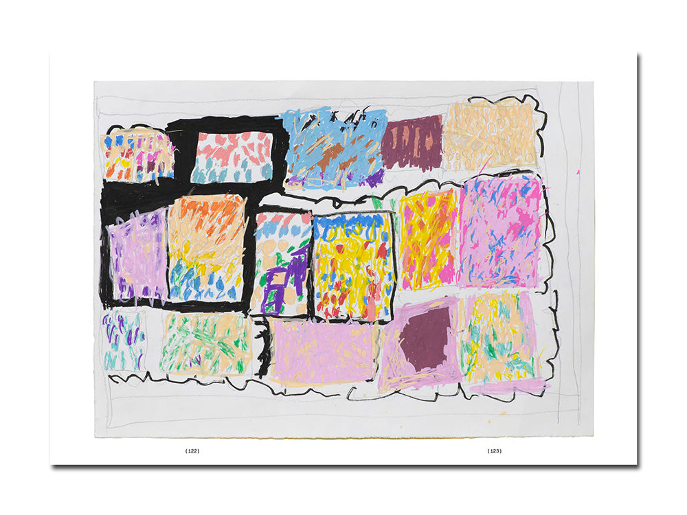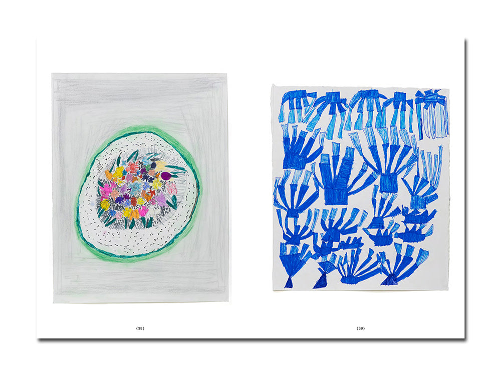 For over three decades, Fiona Longhurst has cultivated a distinctive visual language grounded in pattern, repetition, and colour. A longstanding artist in the Arts Project Australia studio since 1991, her practice has evolved with quiet persistence, producing a compelling body of work. Her intricate fields of mark-making are animated by recurring motifs – floral forms, delicate compositional arrangements, and text. Through intuitive layering and patterning, Longhurst builds a personal visual lexicon. Co-published by Perimeter Editions and Arts Project Australia, 5 7 3 Float Fall Petals 10 Trees is Longhurst’s first major book, and traces her drawing, painting, and collage work across decades of studio practice. The publication – which takes the form of a workbook – features an essay by Jo Salt and is designed by Narelle Brewer for Perimeter Bureau.
