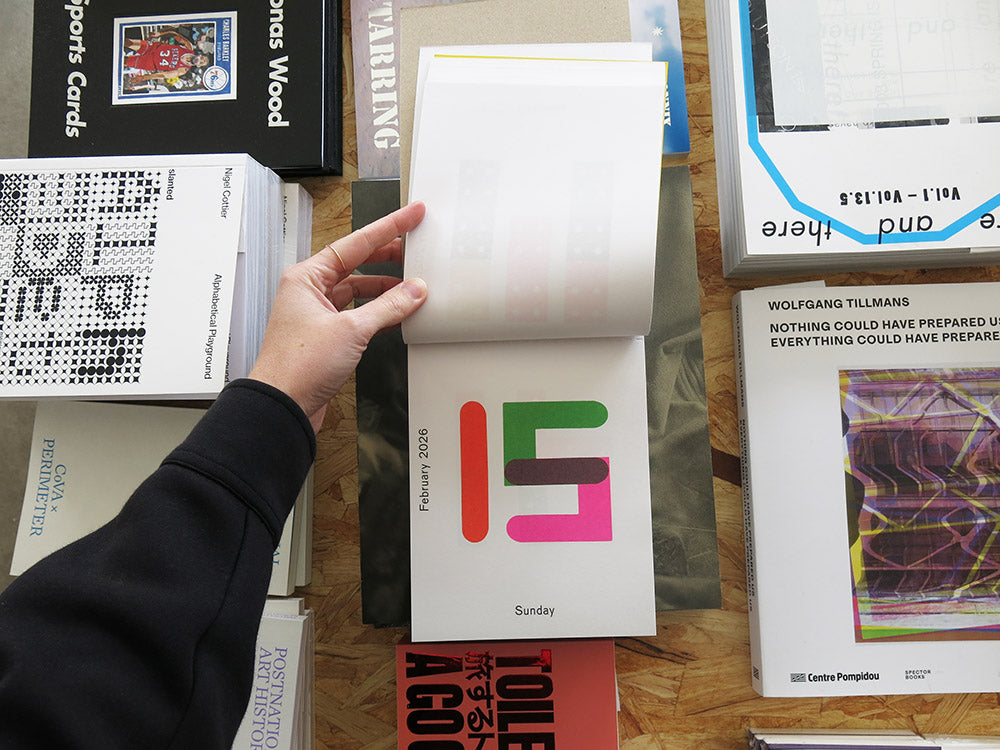 A tear-off calendar for 2026 by Dutch graphic designer Karel Martens. For each day of the year, Martens has created a unique arrangement, originally constructed using his signature method of printing letterpress monoprints from found metal forms, and then digitised to comprise 365 compositions in total. Every day is a new day!