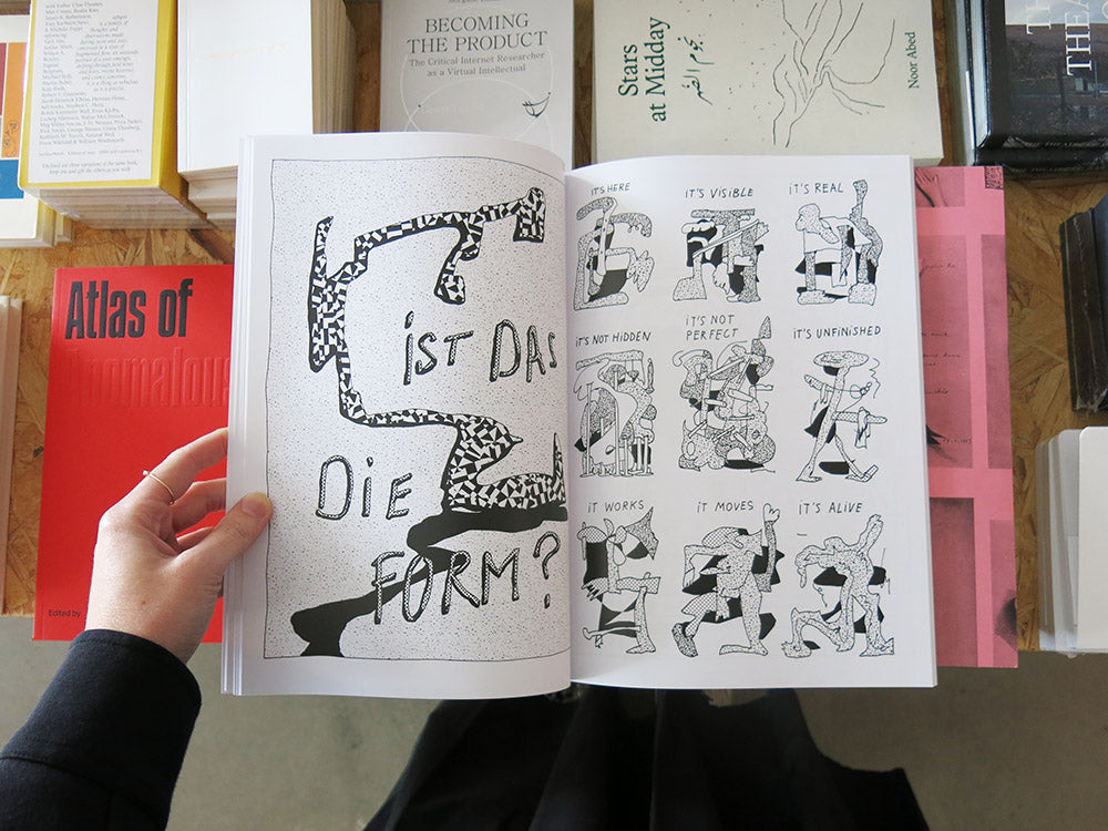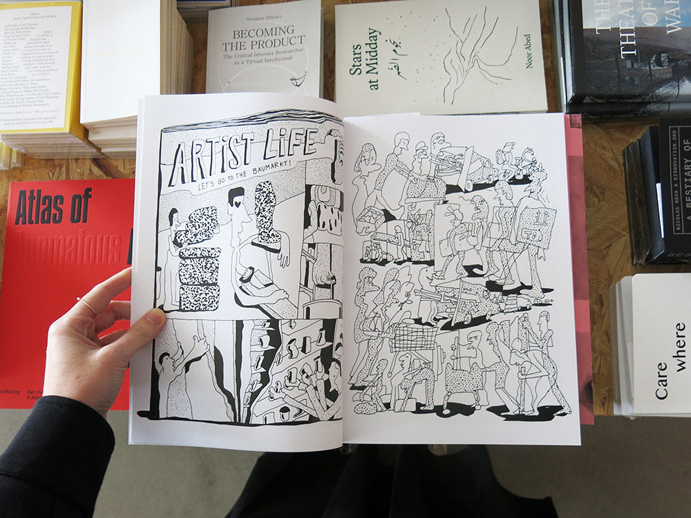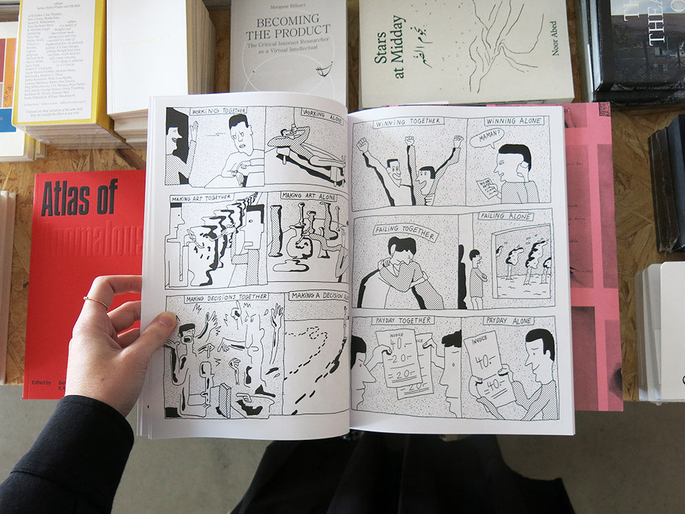 At the core of Bastien Aubry’s practice is the construction of compelling environments that combine craft and design to create art. At once humorous and precarious, Aubry’s work is motivated by the poetry of failure and the beauty found in the less-than-perfect, and much of his sculptural practice features misshapen objects, alienated in a playful and ironic way. Out of Shape takes this concept further in the two-dimensional space of drawing. Mixing design, art history, pop culture, and comics, Aubry fills the pages with caricatures, speech balloons, captions, misshapen forms, and squiggly lines – a humorous and thought-provoking deep dive into the artist’s own mind.