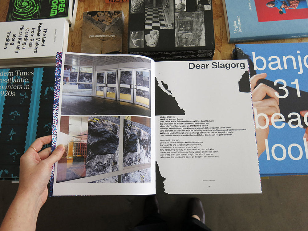 Hey Monte Schlacko, dear Slagorg by Susanne Kriemann explores the intersection of nature, industrial history, and architecture. The book is rooted in photographs taken on 'Monte Schlacko' – a former slag heap in Siegen, now a nature reserve. Mosses, lichens, and pioneer plants growing on industrial residue form the botanical and metallurgical core of the work.