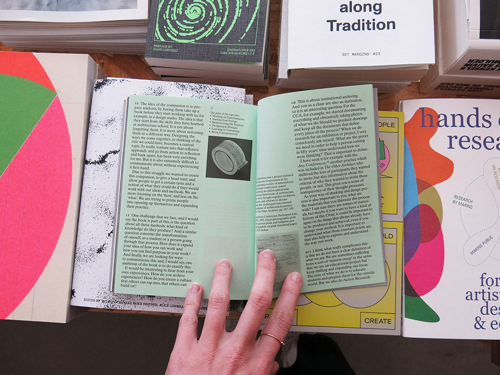 Portability catalyses functionality: designed to be held close, carried around and frequently referenced as a habitual working companion. Inside, the narrative is distilled across four chapters, each organised around a verb: ‘to project’, ‘to experience’, ‘to sequence’, and ‘to activate’. These verbs arise twice within each chapter: first as a contextual survey of established disciplinary practices within the field of architecture and urban transformation (as the Action); and second as a speculative invitation to re-enact these practices in nascent forms (as the Primer). These latter sections offer rumination on NEWROPE’s ongoing pursuit of collectivity as a methodology to address the urgent complexities of our times. Tested within NEWROPE’s Design in Dialogue Lab this investigation uses tangible elements such as props and performative mock-ups as instruments to affect new forms of communication and engagement. Understanding the book as not only a narration of these collaborative rehearsals but a companion to future performances, we come to realise its self-fulfilling function—a prop for tacit co-creation.