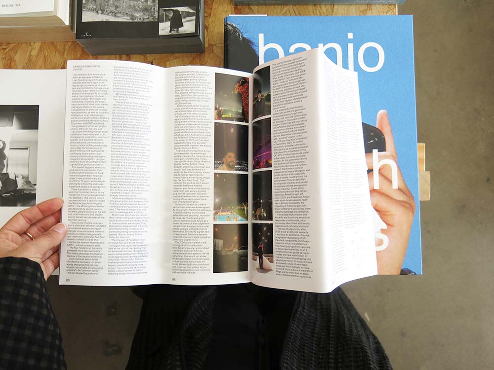 Is the decline of the West irreversible? We interview YANCEY STRICKLER on creating alternative realities. RICHARD WENTWORTH walks and sends postcards. WENDY BROWN prefaces a new translation of Marx’s Capital. NOAM CHOMSKY is in conversation with RAGE AGAINST THE MACHINE. FRANCIS FUKUYAMA is in conversation with JACK SELF, who reviews Bin Laden and the creative millennial. MADDY WEAVERS cancels out noise. OLUWATOBILOBA AJAYI reviews black satire, while NEO-METABOLISM reviews The Limits to Growth. NOAH GOTLIB watches the American dream crumble. MAX CREASY documents the last disposable vape, while TANJA ENGLEBERTS captures oil at sea. SARAH OWEN and ROSE THEODORA read the stars. STEPHANIE SHERMAN, LUKÁŠ LIKAVČAN and RACHEL PEARL don spacesuits on Earth, while the OFFICE OF APPLIED STRATEGY wears corporate merch. SOPHIA SHEPPARD frees herself as an adult, plus much more.